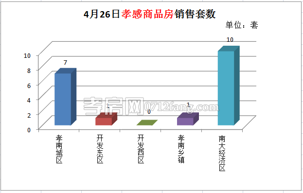 4月26日,全市的銷售套數(shù)為19套。其中孝南城區(qū)為7套,開發(fā)東區(qū)為1套,孝南鄉(xiāng)鎮(zhèn)為1套,南大經(jīng)濟區(qū)為10套。