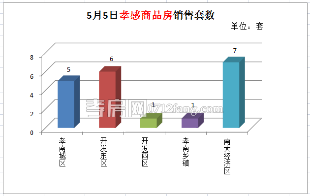 5月5日,全市的銷售套數(shù)為26套。其中孝南城區(qū)為5套,開發(fā)東區(qū)為6套,開發(fā)西區(qū)為1套,孝南鄉(xiāng)鎮(zhèn)為1套,南大經(jīng)濟區(qū)為7套。