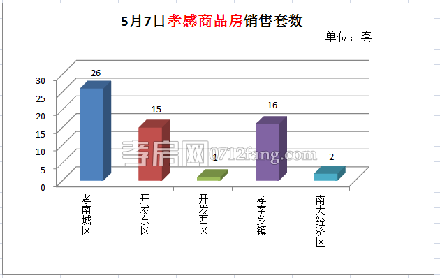 5月7日,全市的銷售套數(shù)為61套。其中孝南城區(qū)為26套,開發(fā)東區(qū)為15套,開發(fā)西區(qū)為1套,孝南鄉(xiāng)鎮(zhèn)為16套,南大經(jīng)濟(jì)區(qū)為2套。
