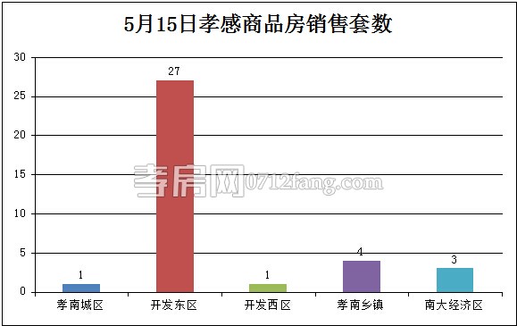 5月15日,全市的銷售套數為38套。其中孝南城區(qū)為1套,開發(fā)東區(qū)為27套,開發(fā)西區(qū)為1套,孝南鄉(xiāng)鎮(zhèn)為4套,南大經濟區(qū)為3套。