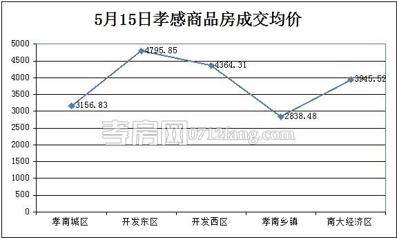 5月15日,全市的成交均價為4325.84元/㎡。其中開孝南城區(qū)為3156.83元/㎡,開發(fā)東區(qū)為4795.85元/㎡,開發(fā)西區(qū)為4364.31元/㎡,孝南鄉(xiāng)鎮(zhèn)為2838.48元/㎡,南大經濟區(qū)為3945.52元/㎡。