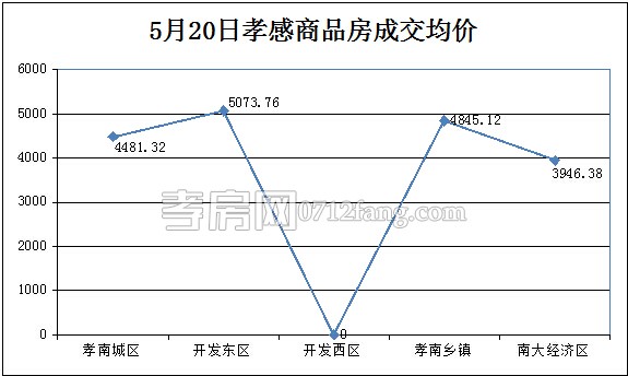 5月20日,全市的成交均價為4515.04元/㎡。其中開孝南城區(qū)為4481.32元/㎡,開發(fā)東區(qū)為5073.76元/㎡,孝南鄉(xiāng)鎮(zhèn)為4845.12元/㎡,南大經(jīng)濟(jì)區(qū)為3946.38元/㎡。