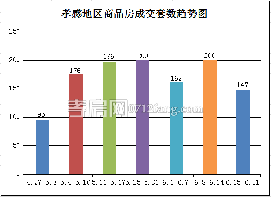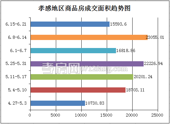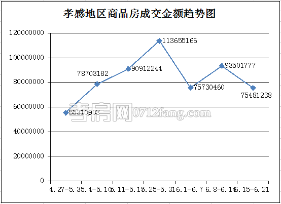據(jù)孝房網(wǎng)數(shù)據(jù)研究顯示,從2015年6月15日到2015年6月21日,孝感地區(qū)銷售總交易記錄147套,面積為15593.6平方米,金額為75481238.33元,均價(jià)為4840.53元/平方米。