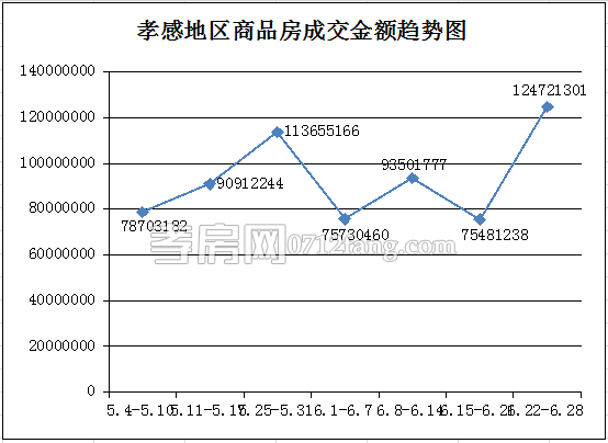 據(jù)孝房網(wǎng)數(shù)據(jù)研究顯示,從2015年6月22日到2015年6月28日,孝感地區(qū)銷售總交易記錄211套,面積為22192.05平方米,金額為124721300.9元,均價為5620.09元/平方米。