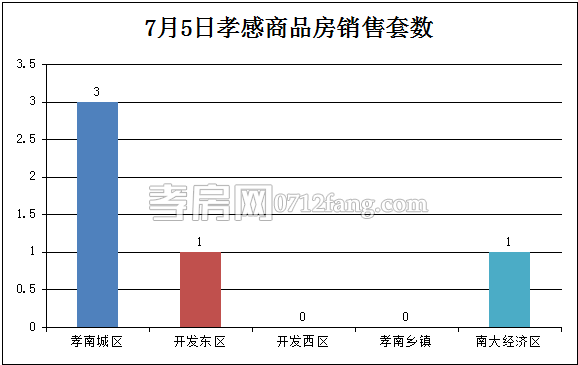 7月5日,全市的銷售套數(shù)為5套。其中孝南城區(qū)為3套,開發(fā)東區(qū)為1套,南大經(jīng)濟區(qū)為1套。