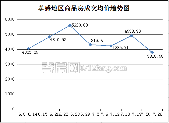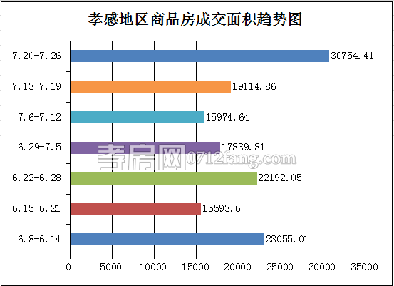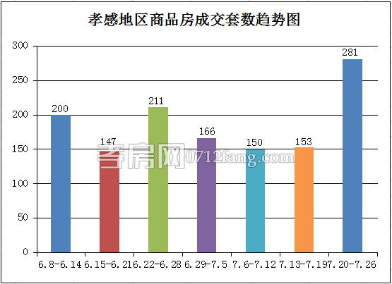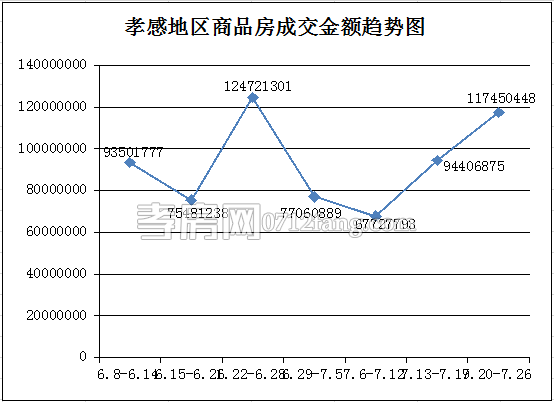 據(jù)孝房網(wǎng)數(shù)據(jù)研究顯示,從2015年7月20日到2015年7月26日,孝感地區(qū)銷售總交易記錄281套,面積為30754.41平方米,金額為117450447.7元,均價為3818.98元/平方米。