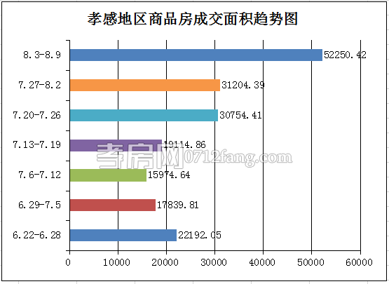 從2015年8月3日到2015年8月9日,孝感地區(qū)銷(xiāo)售總交易記錄483套,環(huán)比上周(278套)上升73.74%;成交均價(jià)3988.1元/平方米,環(huán)比上周(3606.75元/平方米)上升10.57%;成交面積對(duì)比上周(31204.39)上升67.45%;成交總金額環(huán)比上升85.15%。