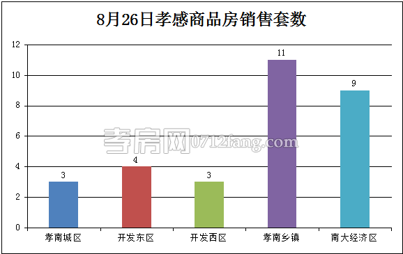 8月26日,全市的銷售套數(shù)為30套。其中孝南城區(qū)為3套,開發(fā)東區(qū)為4套,開發(fā)西區(qū)為3套,孝南鄉(xiāng)鎮(zhèn)為11套,南大經(jīng)濟區(qū)為9套。