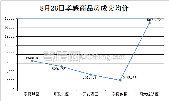 8月26日,全市的成交均價為7232.34元/㎡。其中開孝南城區(qū)為6548.87元/㎡,開發(fā)東區(qū)為5294.53元/㎡,開發(fā)西區(qū)為3440.37元/㎡,孝南鄉(xiāng)鎮(zhèn)為2168.68元/㎡,南大經(jīng)濟區(qū)為15071.72元/㎡。
