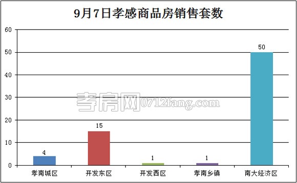 9月7日,全市的銷售套數(shù)為71套。其中孝南城區(qū)為4套,開發(fā)東區(qū)為15套,開發(fā)西區(qū)為1套,孝南鄉(xiāng)鎮(zhèn)為1套,南大經(jīng)濟區(qū)為50套。