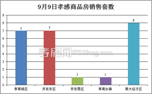 9月9日,全市的銷售套數(shù)為24套。其中孝南城區(qū)為7套,開發(fā)東區(qū)為7套,開發(fā)西區(qū)為1套,孝南鄉(xiāng)鎮(zhèn)為1套,南大經(jīng)濟(jì)區(qū)為8套。