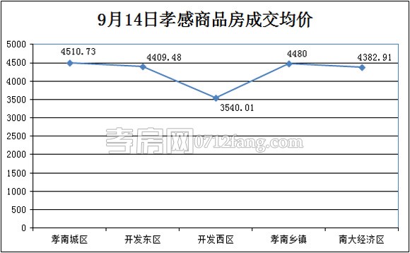 9月14日,全市的成交均價(jià)為4407.55元/㎡。其中開孝南城區(qū)為4510.73元/㎡,開發(fā)東區(qū)為4409.48元/㎡,開發(fā)西區(qū)為3540.01元/㎡,孝南鄉(xiāng)鎮(zhèn)為4480.00元/㎡,南大經(jīng)濟(jì)區(qū)為4382.91元/㎡。