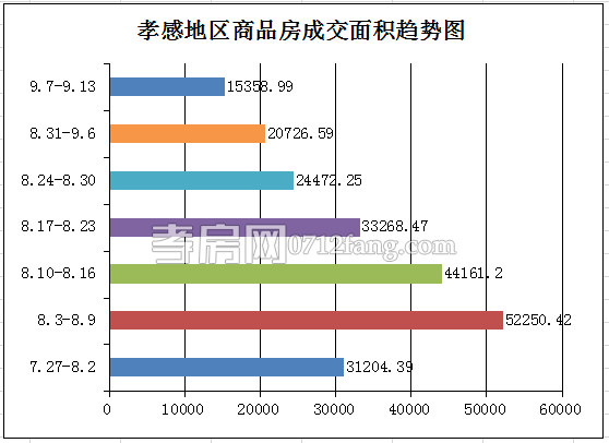 據(jù)孝房網(wǎng)數(shù)據(jù)研究顯示,從2015年9月14日到2015年9月20日,孝感地區(qū)銷(xiāo)售總交易記錄116套,面積為13933.39平方米,金額為87377365.2元,均價(jià)為6271.08元/平方米。
