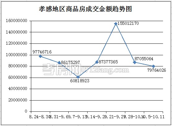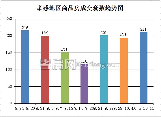 據(jù)孝房網(wǎng)數(shù)據(jù)研究顯示,從2015年10月5日到2015年10月11日,孝感地區(qū)銷售總交易記錄211套,面積為26922.96平方米,金額為79764025.59元,均價為2962.68元/平方米。