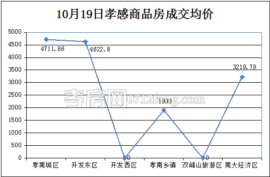 10月19日,全市的成交均價(jià)為4017.58元/㎡。其中孝南城區(qū)為4711.86元/㎡,開(kāi)發(fā)東區(qū)為4622.80元/㎡,孝南鄉(xiāng)鎮(zhèn)為1900.00m²,南大經(jīng)濟(jì)區(qū)為3219.79m²。