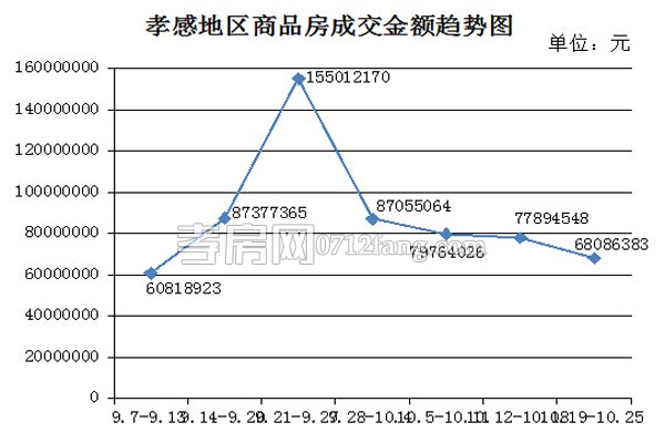 據(jù)孝房網(wǎng)數(shù)據(jù)研究顯示,從2015年10月19日到2015年10月25日,孝感地區(qū)銷售總交易記錄179套,面積為17539.47平方米,金額為68086383.06元,均價為3881.90元/平方米。