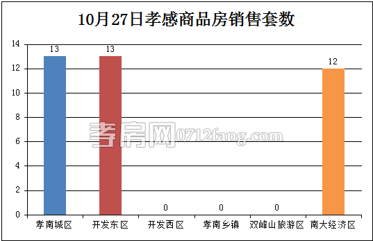 10月27日,全市的銷售套數為38套。其中孝南城區(qū)為13套,開發(fā)東區(qū)為13套,南大經濟區(qū)為12套。
