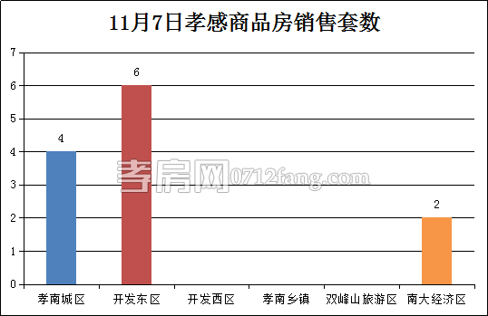 11月7日,全市的銷售套數(shù)為12套。其中孝南城區(qū)為4套,開發(fā)東區(qū)為6套,南大經(jīng)濟(jì)區(qū)為2套。