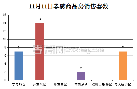 11月11日,全市的銷售套數(shù)為30套,其中孝南城區(qū)為7套,開發(fā)東區(qū)為14套,孝南鄉(xiāng)鎮(zhèn)為2套,南大經(jīng)濟(jì)區(qū)為7套。