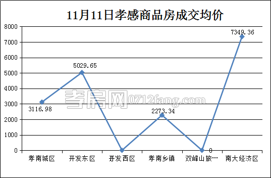 11月11日,全市的成交均價為4778.94元/㎡。其中孝南城區(qū)為3116.98元/m²,開發(fā)東區(qū)為5029.65元/m²,孝南鄉(xiāng)鎮(zhèn)為2273.34元/m²,南大經(jīng)濟(jì)區(qū)為7349.36元/m²。