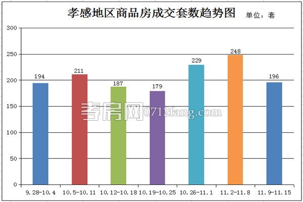 據(jù)孝房網(wǎng)數(shù)據(jù)研究顯示,從2015年11月9日到2015年11月15日,孝感地區(qū)銷(xiāo)售總交易記錄196套,面積為23927.56平方米,金額為271023269.43元,均價(jià)為11326.82元/平方米。