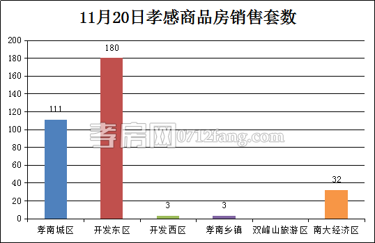 11月20日,全市的銷售套數(shù)為329套,其中孝南城區(qū)為111套,開發(fā)東區(qū)為180套,開發(fā)西區(qū)為3套,孝南鄉(xiāng)鎮(zhèn)為3套,南大經(jīng)濟區(qū)為32套。