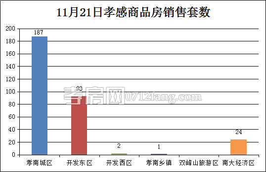 11月21日,全市的銷售套數(shù)為307套,其中孝南城區(qū)為187套,開發(fā)東區(qū)為93套,開發(fā)西區(qū)為2套,孝南鄉(xiāng)鎮(zhèn)為1套,南大經(jīng)濟區(qū)為24套。