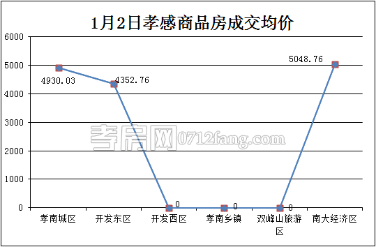1月2日,全市的成交均價(jià)為4887.28元/㎡。其中孝南城區(qū)為4352.76元/㎡,開(kāi)發(fā)西區(qū)為3300.00元/㎡,南大經(jīng)濟(jì)區(qū)為5048.76元/㎡。