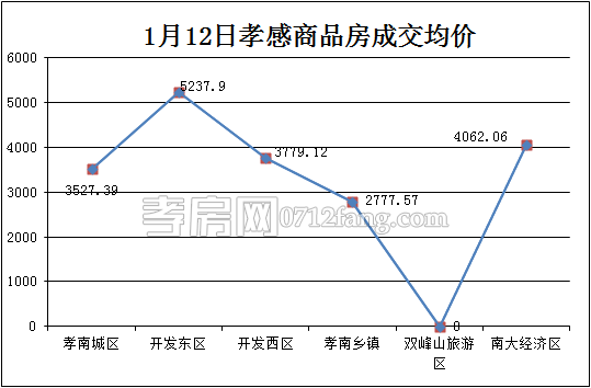 1月12日,全市的成交均價為3927.66元/㎡。其中孝南城區(qū)為3527.39元/㎡,開發(fā)西區(qū)為5237.90元/㎡,開發(fā)西區(qū)為3779.12元/㎡,孝南鄉(xiāng)鎮(zhèn)2777.57元/㎡,南大經(jīng)濟(jì)區(qū)為4062.06元/㎡。