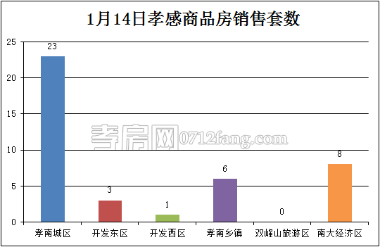 1月14日,全市的銷售套數(shù)為41套,其中孝南城區(qū)為23套,開發(fā)東區(qū)為3套,開發(fā)西區(qū)為1套,孝南鄉(xiāng)鎮(zhèn)為6套,南大經(jīng)濟區(qū)為8套。