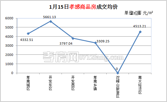 1月15日,全市的成交均價為4221.89元/㎡。其中孝南城區(qū)為4332.51元/㎡,開發(fā)東區(qū)為5661.13元/㎡,開發(fā)西區(qū)為3797.04元/㎡,孝南鄉(xiāng)鎮(zhèn)3309.25元/㎡,南大經濟區(qū)為4513.21元/㎡。