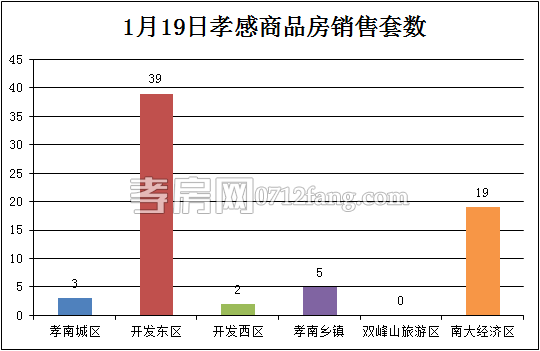 1月19日,全市的銷售套數(shù)為68套,其中孝南城區(qū)為3套,開發(fā)東區(qū)為39套,開發(fā)西區(qū)為2套,孝南鄉(xiāng)鎮(zhèn)為5套,南大經(jīng)濟(jì)區(qū)為19套。