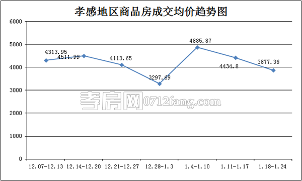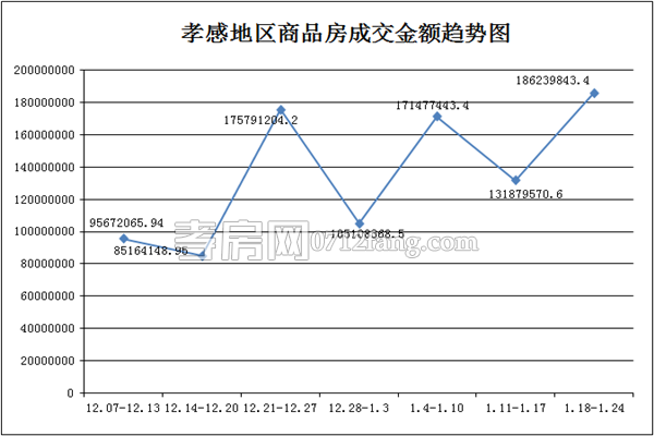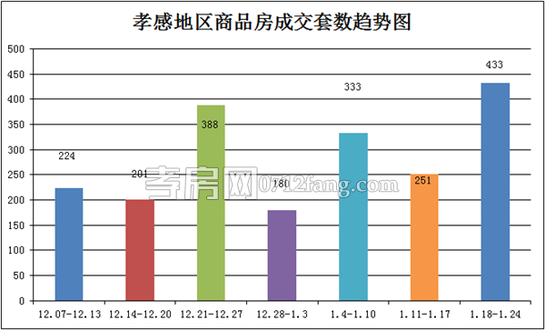 據(jù)孝房網(wǎng)數(shù)據(jù)研究統(tǒng)計,從2016年1月18日到2016年1月24日,孝感地區(qū)銷售總交易記錄433套,面積為49425.80平方米,金額為186239843.37元,均價為3877.36元/平方米。