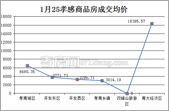 1月25日,全市的成交均價(jià)為4811.44元/㎡。其中孝南城區(qū)為6490.35元/㎡,開發(fā)東區(qū)為3771.73元/㎡,開發(fā)西區(qū)為3295.71元/㎡,孝南鄉(xiāng)鎮(zhèn)3014.19元/㎡,南大經(jīng)濟(jì)區(qū)為16395.57元/㎡。