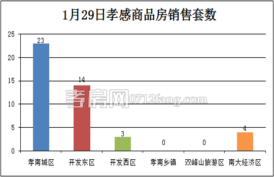 1月29日,全市的銷售套數(shù)為44套,其中孝南城區(qū)為23套,開發(fā)東區(qū)為14套,開發(fā)西區(qū)為3套,孝南鄉(xiāng)鎮(zhèn)為0套,南大經(jīng)濟區(qū)為4套。