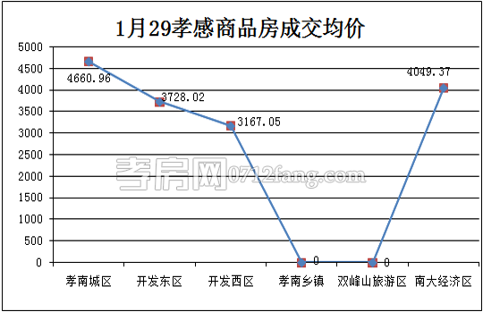 1月29日,全市的成交均價為4207.19元/㎡。其中孝南城區(qū)為4660.96元/㎡,開發(fā)東區(qū)為3728.02元/㎡,開發(fā)西區(qū)為3167.05元/㎡,孝南鄉(xiāng)鎮(zhèn)0元/㎡,南大經(jīng)濟區(qū)為4049.37元/㎡。