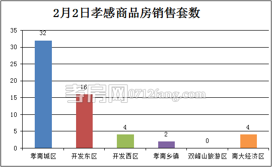 2月2日,全市的銷售套數(shù)為58套,其中孝南城區(qū)為32套,開發(fā)東區(qū)為16套,開發(fā)西區(qū)為4套,孝南鄉(xiāng)鎮(zhèn)為2套,南大經(jīng)濟(jì)區(qū)為4套。