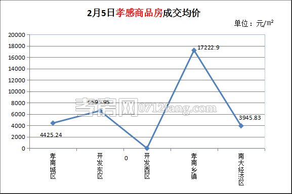 2月5日,全市的成交均價(jià)為7303.83元/㎡。其中孝南城區(qū)為4425.24元/㎡,開(kāi)發(fā)東區(qū)為6595.95元/㎡,開(kāi)發(fā)西區(qū)為0元/㎡,孝南鄉(xiāng)鎮(zhèn)17222.9元/㎡,南大經(jīng)濟(jì)區(qū)為3945.83元/㎡。