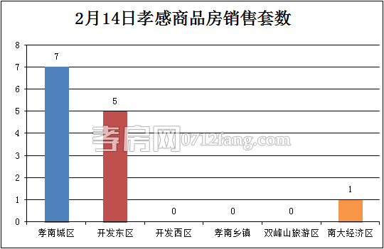 2月14日,全市的銷售套數(shù)為13套,其中孝南城區(qū)為7套,開發(fā)東區(qū)為5套,南大經(jīng)濟區(qū)為1套。