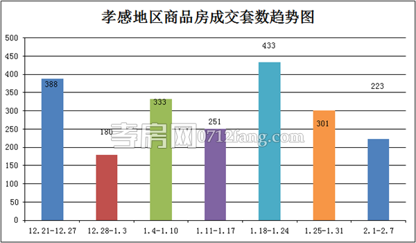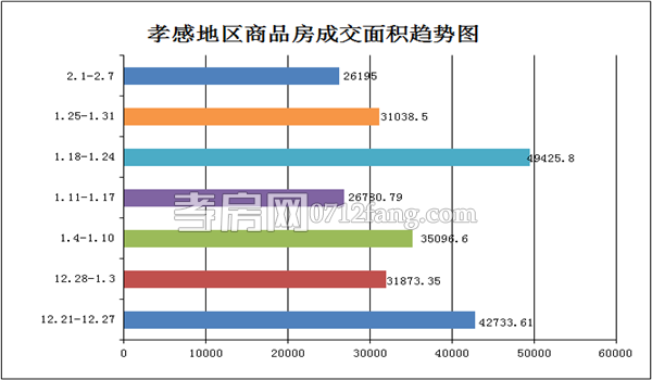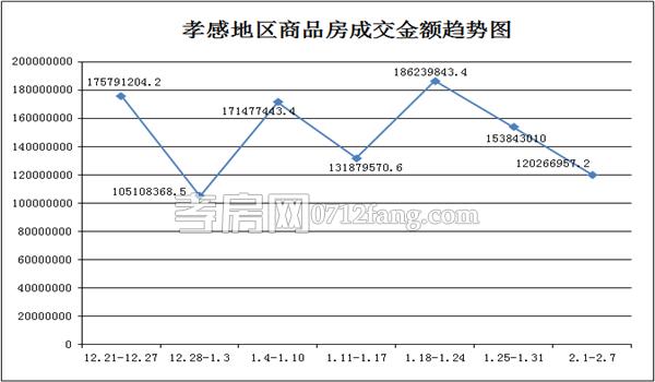 據(jù)孝房網(wǎng)數(shù)據(jù)研究統(tǒng)計(jì),從2016年2月1日到2016年2月7日,孝感地區(qū)銷售總交易記錄223套,面積為26195.00平方米,金額為120266957.17元,均價(jià)為4591.22元/平方米。