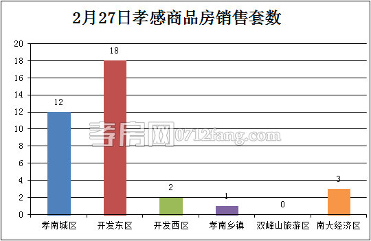 2月27日,全市的銷售套數(shù)為36套,其中孝南城區(qū)為12套,開發(fā)東區(qū)為18套,開發(fā)西區(qū)為2套,孝南鄉(xiāng)鎮(zhèn)為1套,南大經濟區(qū)為3套。