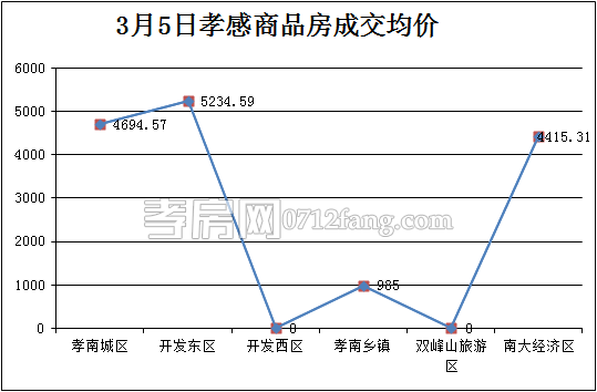 3月5日,全市的成交均價為4908.54元/㎡。其中孝南城區(qū)為4694.57元/㎡,開發(fā)東區(qū)為5234.59元/㎡,孝南鄉(xiāng)鎮(zhèn)為985.00元/㎡,南大經(jīng)濟(jì)區(qū)為4415.31元/㎡。