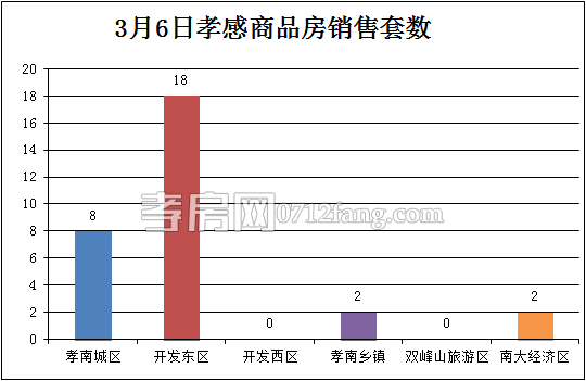 3月6日,全市的銷售套數(shù)為30套,其中孝南城區(qū)為8套,開(kāi)發(fā)東區(qū)為18套,孝南鄉(xiāng)鎮(zhèn)為2套,南大經(jīng)濟(jì)區(qū)為2套。