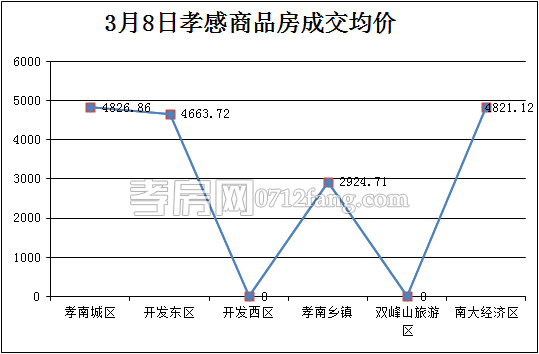 3月8日,全市的成交均價為4652.55元/㎡。其中孝南城區(qū)為4826.86元/㎡,開發(fā)東區(qū)為4663.72元/㎡,孝南鄉(xiāng)鎮(zhèn)為2924.71元/㎡,南大經(jīng)濟區(qū)為4821.12元/㎡。