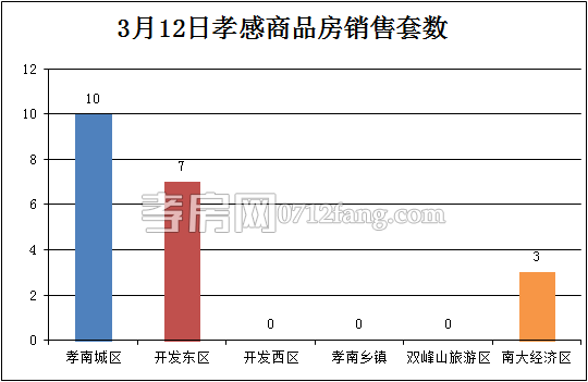 3月12日,全市的銷售套數(shù)為20套,其中孝南城區(qū)為10套,開發(fā)東區(qū)為7套,南大經濟區(qū)為3套。