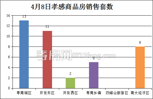 4月8日,全市的銷售套數(shù)為39套,其中孝南城區(qū)為13套,開發(fā)東區(qū)為11套,開發(fā)西區(qū)為2套,孝南鄉(xiāng)鎮(zhèn)為5套,南大經(jīng)濟區(qū)為8套。