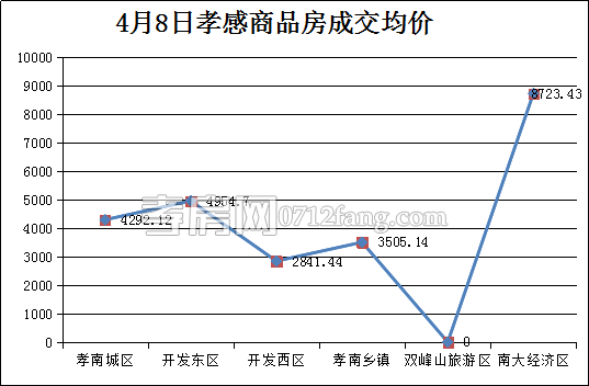 4月8日,全市的成交均價為5937.30元/㎡。其中孝南城區(qū)為4292.12元/㎡,開發(fā)東區(qū)為4954.70元/㎡,開發(fā)西區(qū)為2841.44元/㎡,孝南鄉(xiāng)鎮(zhèn)為3505.14元/㎡,南大經(jīng)濟區(qū)為8723.43元/㎡。