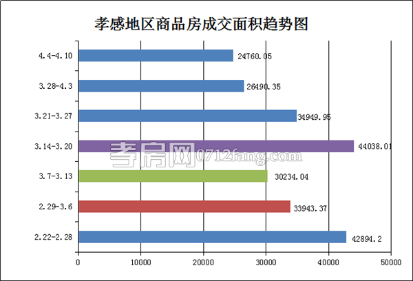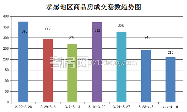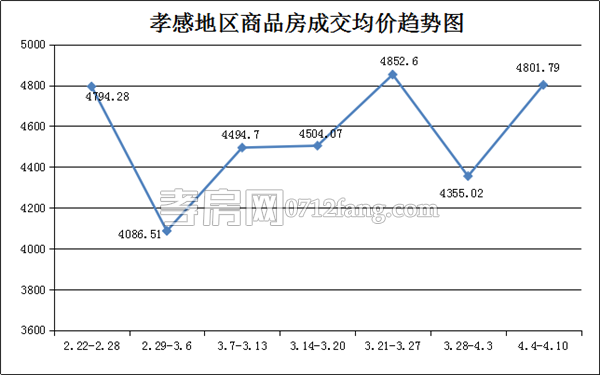 從2016年4月4日到2016年4月10日,孝感地區(qū)銷售總交易記錄210套,環(huán)比比上上周(241套)下滑約13%;成交均價(jià)4801.79元/平方米,與上上周(4355.02元/平方米)上漲約10%;成交面積24760.05平方米,環(huán)比上上周(26490.35平方米)下降約7%;成交總金額環(huán)比上上周上漲約3%。