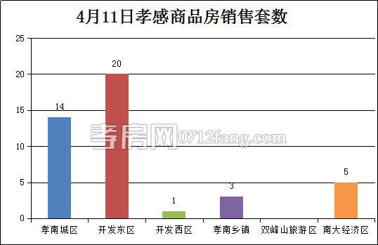 4月11日,全市的銷售套數(shù)為43套,其中孝南城區(qū)為14套,開發(fā)東區(qū)為20套,開發(fā)西區(qū)為1套,孝南鄉(xiāng)鎮(zhèn)為3套,南大經(jīng)濟(jì)區(qū)為5套。