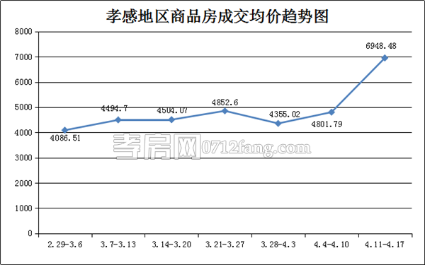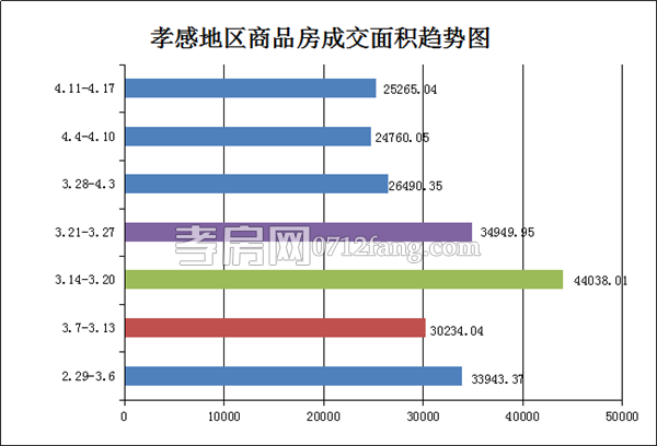 從2016年4月11日到2016年4月17日,孝感地區(qū)銷售總交易記錄253套,環(huán)比比上上周(210套)上漲約20%;成交均價(jià)6948.48元/平方米,與上上周(4801.79元/平方米)上漲約45%;成交面積25265.04平方米,環(huán)比上上周(24760.05平方米)上漲約2%;成交總金額環(huán)比上上周上漲約48%。
